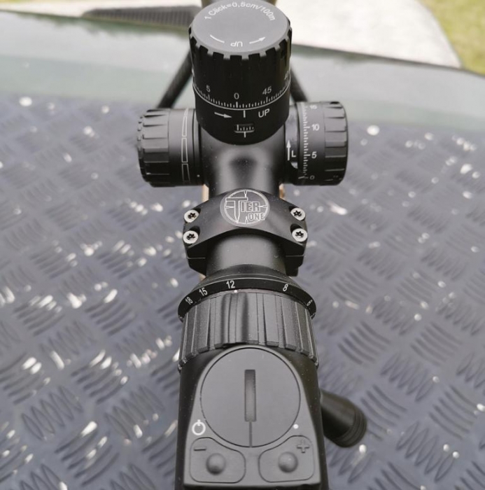 Traditionally, in order to gain more elevation adjustment range; a manufacturer would use a larger diameter body tube, as it simply gives them more room to work with. However, this comes at a detriment to size and weight, both important factors when carrying it about! This goes some way to explaining the size of the elevation turret, which certainly stands out, as it sits 4cm above the main body tube and looks like the coning tower of a submarine! This version came with 0.5cm @ 100m click values, which allows for very precise adjustment down range, which I like, though they could be too precise for some. There was a total of 50cm of adjustment per rotation, with 10 clicks for every 5cm marked on the turret. They have added a rotation indicator window, leaving the user in no doubt where they are in elevation, which can be very useful. They have also included a subzero feature, this is a collar that is controlled by two slots either side of the turret. When lifted up, it allows the user to adjust below the zero stop and covers the window by displaying new markings going in the opposite direction.