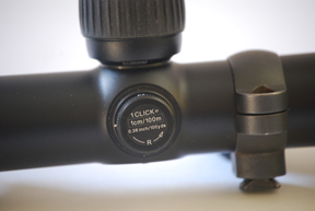 Powered by a CR2032, coin-type cell with a spare under the windage cap operation is simple. Lift up the rubber-sided drum, where it will stay in position and the dot comes on. Illumination adjustment is made by rotating the cap 1/8-turn and holding it there. With clockwise movement increasing it and anti-clockwise decreasing the value. In terms of operation this is similar to the Kahles system, though they mount theirs on the left of the saddle, with Swarovski combining it into the top turret. Typically the unit has a memory and will return to the last setting when switched on again.