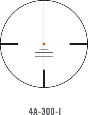 The build goes for a 30mm, one-piece body tube with a fast focus eye piece on the ocular bell. The zoom ring is rubber and ridged for grip with a raised fin to aid dialling. Typically this is a medium/large build and the big, 56mm objective will require some thought on mounting height. The reticule, which is set in the 2nd focal plane is what Swarovski calls a 4A-300-I (illuminated). Essentially it’s a 4A-type (see picture) with three range/lead bars. If you go onto their ballistics resource site you can factor in your ammunition specification and then use the holdover information they calculate for you for a set zero distance. Though there are other reticule choices too.