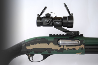 The lenses are nicely bloomed and coated and the flip-up, lens caps follow the Butler Creek design. Turrets are typically small and simple with no notation of click values, but I reckon they are ½ @ 100-yards. With 48-clicks per turn you get four full revolutions, however they don’t seem to have an upper stop position as you just keep winding. Truth is with a red dot this is not so critical given the sorts of distance you will be using them at.