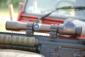 Zeiss surprised us all last year by launching their Duralyt scopes, with three in the range; 1.2-5x36m, 2-8x42 and 3-12x50 and I have to say they are awesome! I’m not sure what they have done to reduce the cost but optical quality does not seem to be on that list. Conversely the most expensive the – 3-12x50 is sub £700. In January 2011 I got the chance to go to the Zeiss factory where they showed us the new illuminated Duralyt’s, so same quality but with a lit reticule; what I have here is the 1.2-5x36.