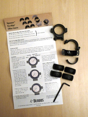 In these circumstances, the answer may be to fit a set of adjustable mounts. Windage- adjustable mounts are widely available, from Millett for example, and Sportsmatch do some excellent one- and two-piece mounts that are adjustable for both height and windage. All of these mounts work by adjusting opposing screws, but there is another way of addressing the problem, in the shape of Burris’ Signature rings and their Pos-Align offset insert system.