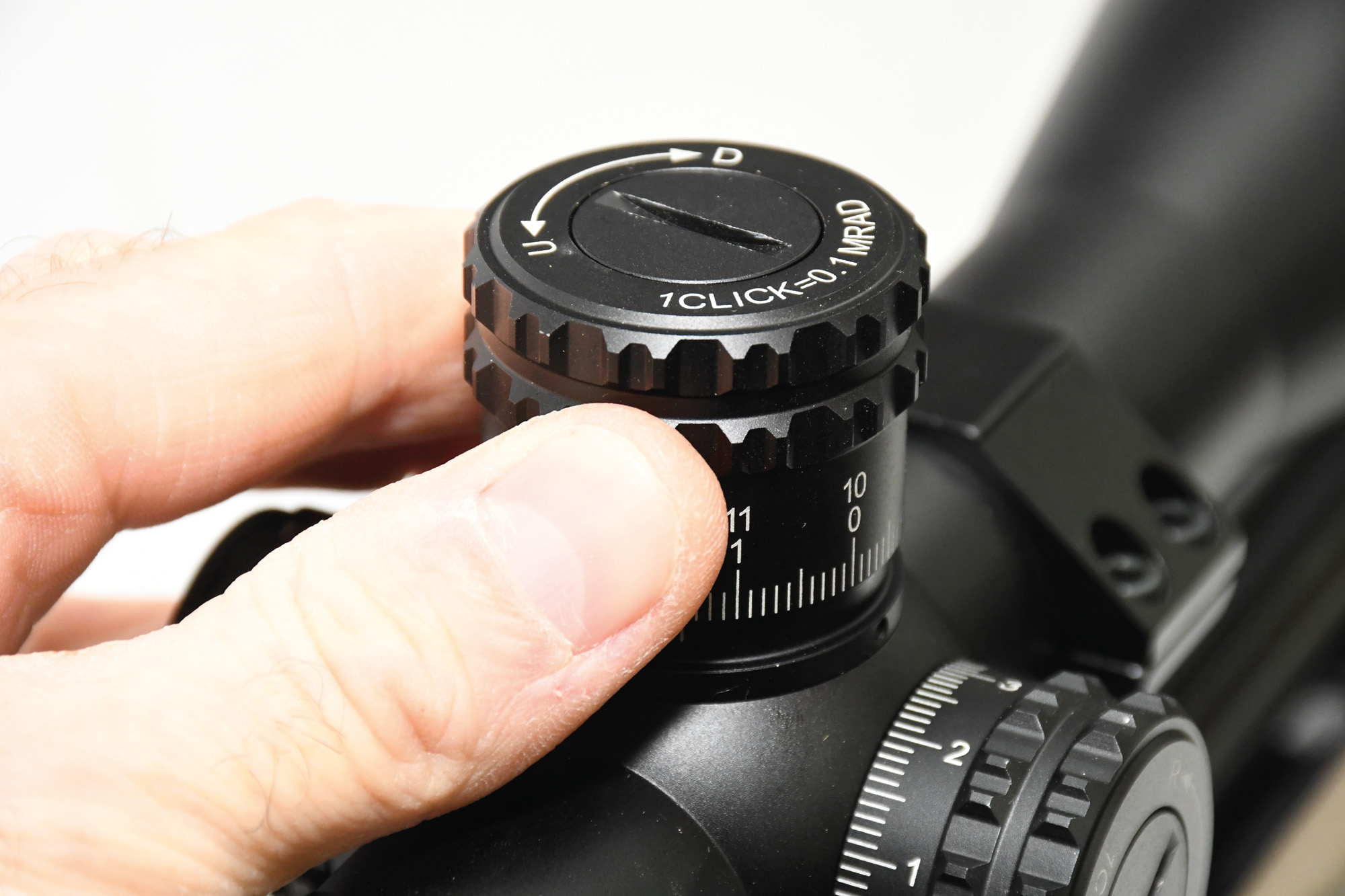 The 38mm turrets are easily gripped and offer consistent, tactile, audible clicks.