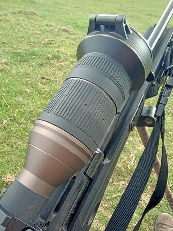 When it comes to zeroing in auto-zeroing mode, the scope’s AI compares ‘before’and ‘after’ images of your target, interprets the difference as an impact, and automatically adjusts the crosshair’s coordinates. With the right calibre (larger), range (closer) and target material, it’s amazing. Otherwise, stick to manual mode. This offers digital targetzoom and ‘freeze-frame’ functions, plus a secondary cross-hair to dial onto your bullet hole. All good, but take care as you exit, because whichever zeroing profile (A-E) you’re setting up, the corrections are saved via a screen that defaults to profile ‘A’. Excessive haste here will result in two messed-up profiles and significant penalties in confusion, time, ammo and blood pressure. RTFM, I guess, except the manual gives no figures for click-values, and the X/Y numbers shown in the scope’s zeroing screen don’t match those in the saved profile, rendering it hard to restore a zero from recorded coordinates. Additionally, the ‘mushiness’ of the dial makes stopping at a precise point difficult (and also mars the menu-scrolling experience). Most importantly, if you intend to use the 20mm FL setting to shoot as well as spot, you must create a separate profile for it, because changing the FL affects the POI (that is in the manual).