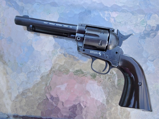 The clever chaps at Umarex have come up trumps, and the Colt 45 SAA revolver is a classic example of what they do best. The version featured fires .177 pellets only, and the CO2-powered action and dummy bullet carriers, mean the specification is not only realistic when compared to a centrefire Colt, but also super-compact, with the 12-gram CO2 capsule neatly stowed inside the grip. The revolver weighs 1.9 lbs, shows a 5.5” barrel, and produces around 2.1 ft/lbs of energy. Umarex claims around 120 shots, however, the shot count can vary depending on conditions.