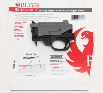 If you’re after a replacement trigger for your Ruger 10/22, then this replacement unit made by Ruger themselves is very easy to fit. In fact, it slots straight in without any issues. The trigger pull is crisper, with a more defined break in the sear’s let-off, and the pull is much lighter too, being typically 3.25 lbs instead of 6 lbs plus! Overall, you can spend a lot more on a drop-in custom trigger, but quite frankly, for hunting, this BX trigger is perfect. That is probably why it is now fitted to all new Ruger 10/22s.
