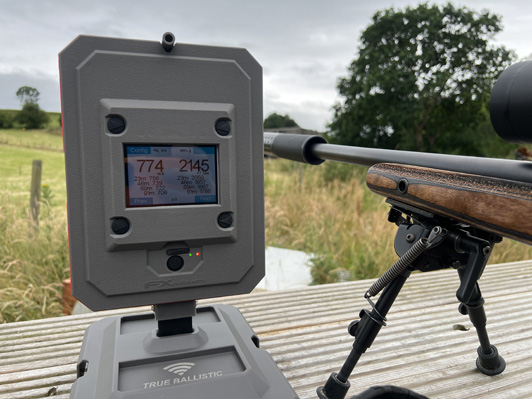 The FX True Ballistic Chronograph is delivered in a padded case that unzips to reveal the unit, a detailed instruction manual and a USB-C charging lead. Doppler radar chronographs, such as this, project a ‘cone’ of electromagnetic waves towards the target you are shooting. They then measure the returning signals that bounce back off the projectile. There is a small peephole at the top of the unit, to help align it on target, and the instructions detail how to position the chronograph correctly. The unit is capable of reading velocities from 400 to 4,000 fps.