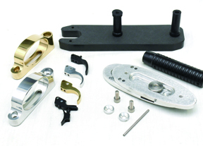 Where would we be without the myriad of adjustable trigger blades Rowan now manufacture? CNC-machined from 6082 aluminium or quality brass, it’s adjustable forwards/backwards by 10mm and can be twisted and locked to the most comfortable position for contact with the pad of your shooting finger. It also has two positions on the post for vertical adjustment.
