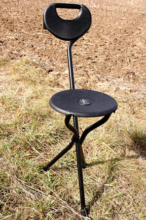 What makes this seat stick stand out is its civilized design and functionality. Where a conventional shooting stick is often a seat atop a single pole, requiring the user to lean against the angled spike in the ground in order to remain stable, the tripod is by definition, self supporting via the three legs.