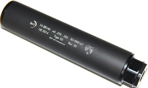 With this in mind B&T doubtless realised that A - there’s a big potential market out there and B – they needed to produce something that conformed to sporting shooters needs. Called the Tiger it is a muzzle-mounted design available in three fullbore (Light Hunting) and one rimfire (.22 Suppressor) options. Precision made from top quality materials B&T do not give ‘lives’ for these items but reckon they should last as long as the rifle that uses them.