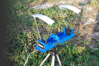 The CHRONY design is distinctive with a compact, hinged, steel body (threaded for a tripod) that folds into itself, which is colour-coded; in this case blue. This holds the two timer sensors and also mounts the sky screens that provide the essential shadow in bright light. Two sets of four rods are provided and six sky screen sections so you can if required mount them low or higher and wider. There’s no integral display screen, but a small remote unit/controller, which offers easy viewing and operation from the firing position, plus there’s less chance of blast damage as with a muzzle-facing display. Power is supplied by a PP9 battery.