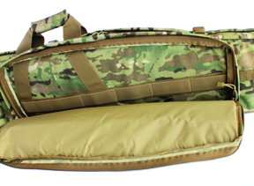 Along with a double carry handle the rear of the bag features a concealed (deployable) harness with padded/adjustable shoulder, waist and sternum straps. This will allow you to carry the bag on your back comfortably for long distances as it offers a well-balanced load designed to carry the weight of the rifle - and all the extras needed.
