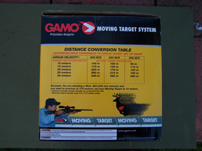 The deer takes about 5 seconds to travel from one end to the other on the slowest setting, and around 3 seconds on the fastest. The slowest speed is plenty of time to take aim and shoot, without it being too easy, but at top speed it's another matter entirely! The target can obviously be placed at different distances to make things that bit trickier, or the random speed selector can be used. Gamo have printed a table on the box, which shows how different distances and pellet speed can relate to full bore calibres; this allows you to practice shooting deer with your airgun instead of your stalking rifle. I don't know how accurate this is, and it may just be a clever bit of marketing, but who cares when the target's such fun to shoot anyway?