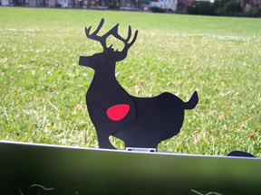 I took the assembled unit to my local club, and boy was it popular! At 30 yards it proved to be a challenging, enjoyable target to shoot at, and highly addictive. It's possible to work out how much lead is required when shooting on a specific speed setting, but the 'random' option is really tricky, and all the more fun because of it. The metal deer heads and body stood up well to the onslaught, as did the rest of the package, and I can see no problems with thousands of shots being fired at it. I expect the antlers will eventually bend from direct hits, but will be easily sorted with a bit of judicious bending. On the first outing, one of the nuts came off one of the body securing screws, which disappeared into the grass on the range. I'd probably not done it up tight enough, and it stopped the fun for the evening, which was a shame, as we were really getting into it. I later fitted a replacement nut with a drop of thread locking compound, and put some on the others while I was at it. I've since had no more problems. The target works best on level ground, but it might be easier to drill a hole in the bottom of each steel section, and screw the track to a length of timber. This way it could be placed on any surface and still work well.