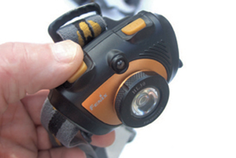 The light source is a Cree XP-G R5 LED with a maximum output of 200 lumens, an impressive 140 hours run time on the low setting of 4 lumens, plus a wide, pre-focused beam. The lamp head can be tilted down almost 80-degrees (via a very quiet ratchet system) from the closed full-on face position.