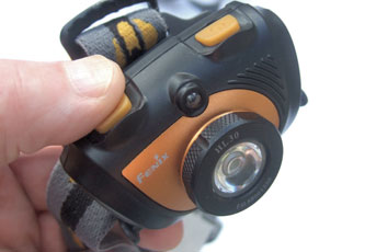 First up is the Fenix HL30. The 2 x AA batteries that power it are housed in the lightweight lamp unit itself. A thoughtful inclusion is the spare rubber seal for the battery compartment. This versatile compact head torch features a waterproof structure and offers 4 lighting levels, a single red LED (to preserve nightvision) and a SOS (flashing) mode. Operation is by two yellow rubberised pressure switches positioned on the top of the tough casing. Pressing the left switches the lamp ON/OFF, light-type selection is handled by the one on the right. With light pressure allowing you to scroll through the options and also access the 4-power levels - 4L, 45L, 100L and then the 200L.