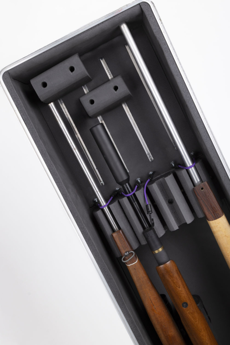 That background has informed the case’s construction: it is handbuilt in Britain, features four lockable catches, fully adjustable stock and barrel blocks, and a lid that can be hung on the rear of the case when open. When open, it can double as a standalone rack.