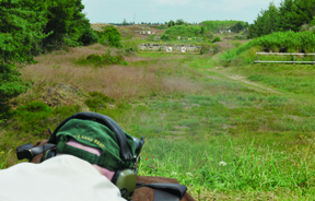 Then it was off on ‘the long march’ or armed nature ramble to the various tasks. Most stages required 12-rounds so your loading was also tested as rifles only had a single mag. The high seats were interesting as they had doubtless been designed by a sadist and had no real side support and a low, non-adjustable front bar. Though seated; getting a solid position was not easy, which showed in the scores I think we were shooting at 350m on this one; great fun! But a superb and challenging test of marksmanship.