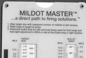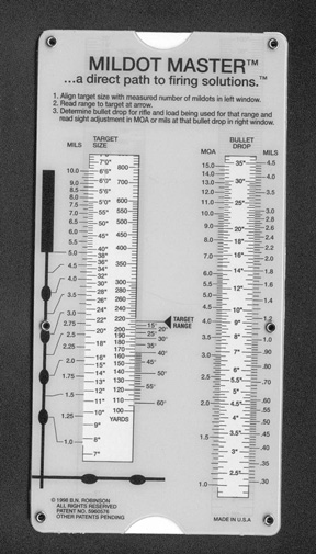 Confused by Mil-Dot scopes? Well you never need to be again with Mildot Master. The world and his wife all seem to have Mil-Dot reticules in their scopes, it’s more fashion than function, as some shooters do not have a clue what it’s for. Yes it can be used as a ladder reticule, but it’s in fact a visual, rangefinding system. It works on the number of dots a known height or width target subtends, which when calculated using a formula gives the range in yards or meters. Which requires a bit of math!