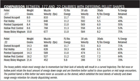 Calibre choice comes down to your preference and abilities and the range at which you are comfortable taking shots at. Also remember PCPs generally work better with heavy pellets. Spring-guns and gas rams willwork better with medium or lightweight pellets. For most shooters the .22 will harvest quarry up to 35 yards or so, but the .177’s flatter trajectory will make connecting with your target a lot easier up to and past this range.