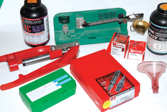 My initial thoughts were, reloaders would be hard pressed to make the factory figures, like most calibres - the 204 Ruger being a classic case! Dies duly arrived and by that time I had been hording my fired brass and had about 100 to play with. I had never reloaded anything in .17” before and realised I would need a tiny powder funnel. This came from MTM Case-Gard’s Small Multi-calibre Powder Funnel set, which was supplied by Henry Krank & Co Ltd. This includes four adaptors to suit various case mouth diameters, along with a drop tube and carry case.