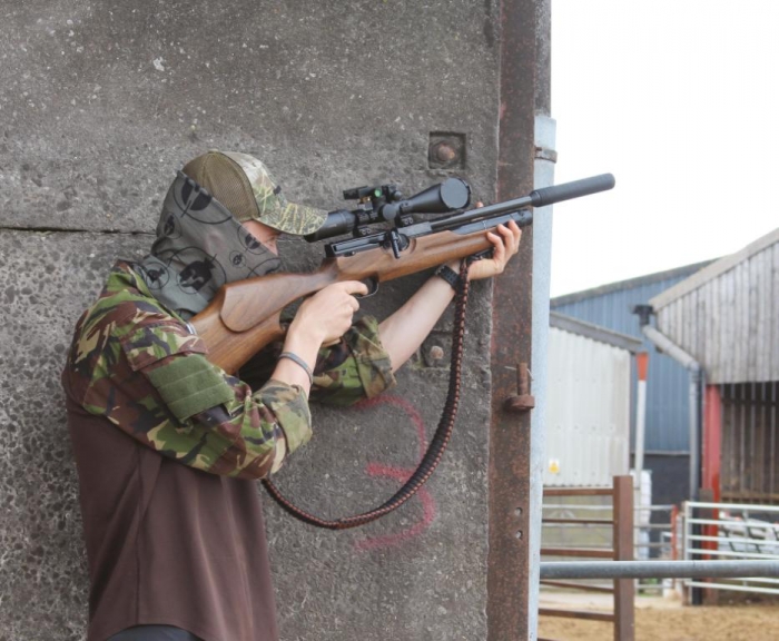 It was .177, which was great, because it meant I knew all the aim points so could help when it came to shots that required a bit of hold over, I had spent some hours looking down his scope when it was mounted on my 100 and I loved it. We spotted a couple of woodies over in some trees surrounding the farmhouse garden and thought it would be worth having a stalk over. He led the way, knowing the farm better than me. We used a brick wall as cover, which allowed us to move swiftly without fear of being spotted. In no time at all, we were close enough for a shot and there was a wall at an ideal height for both of us to rest on. Having done this many times together before, Tom knew the drill. He had the bird on the left and I the right. I counted down “3,2,1 (bang)”. Both dropped through the conifer trees and out of sight.
